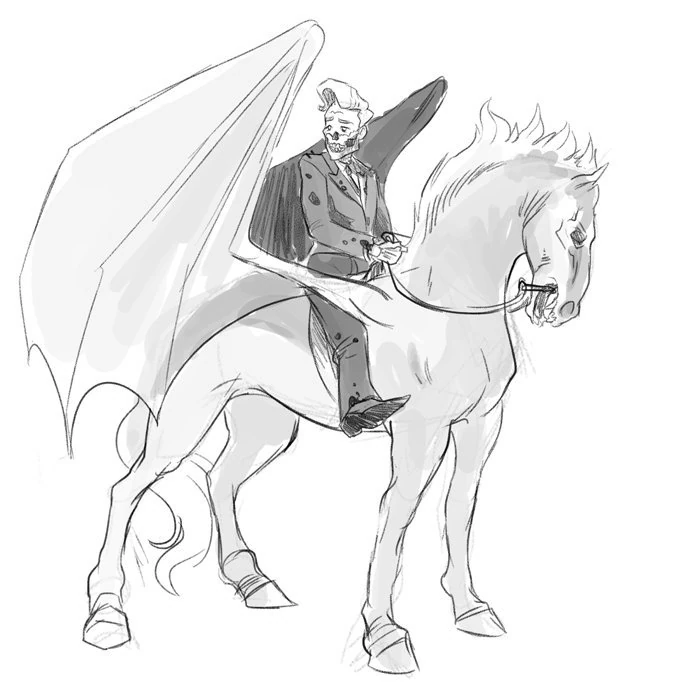 - ↑ Fan art of Conan on his nightmare, by Bri (source). Used with permission.