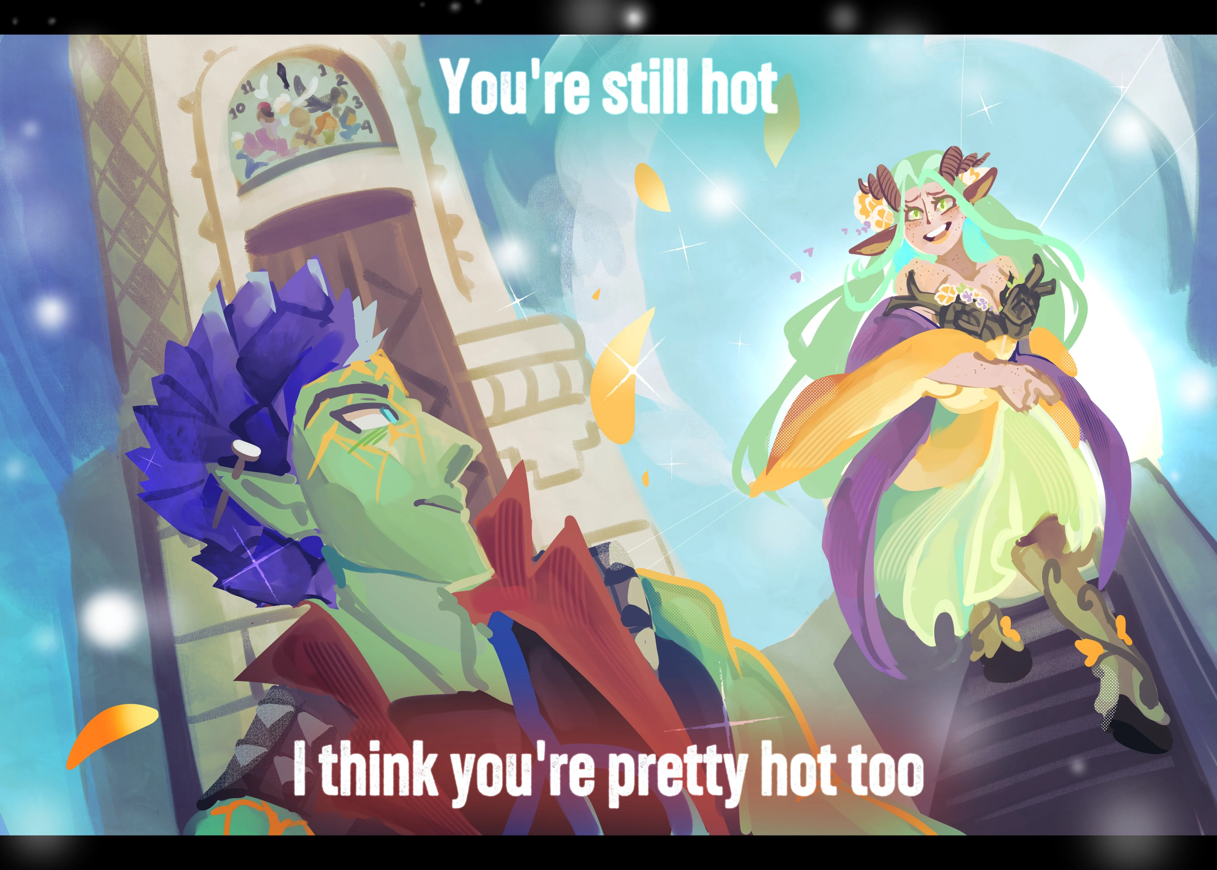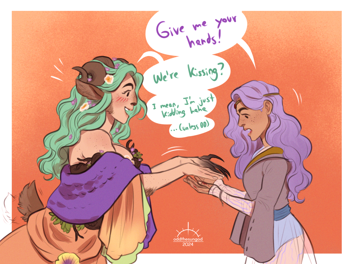 - ↑ Fan art of Fearne caring about Orym, by Pyromeekorai (source). Used with permission.