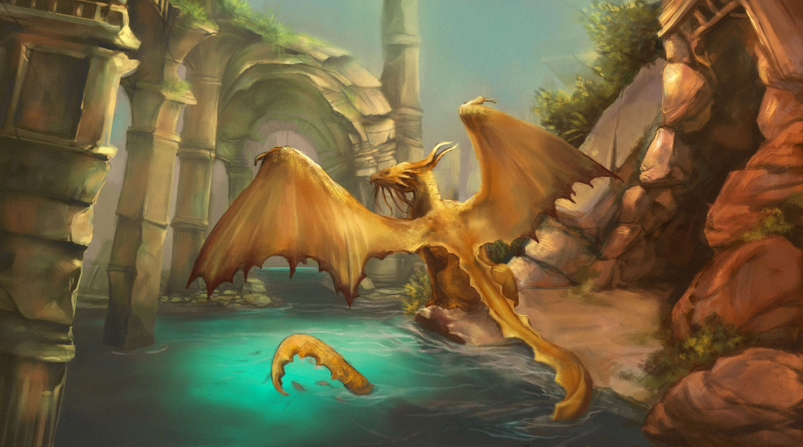- ↑ Depiction of an ancient gold dragon, by Autumn Rain Turkel from D&D: Monster Manual, page 113. This page contains unofficial Fan Content permitted under the Wizards of the Coast Fan Content Policy. Not approved/endorsed by Wizards. Portions of the materials used are property of Wizards of the Coast. ©Wizards of the Coast LLC.