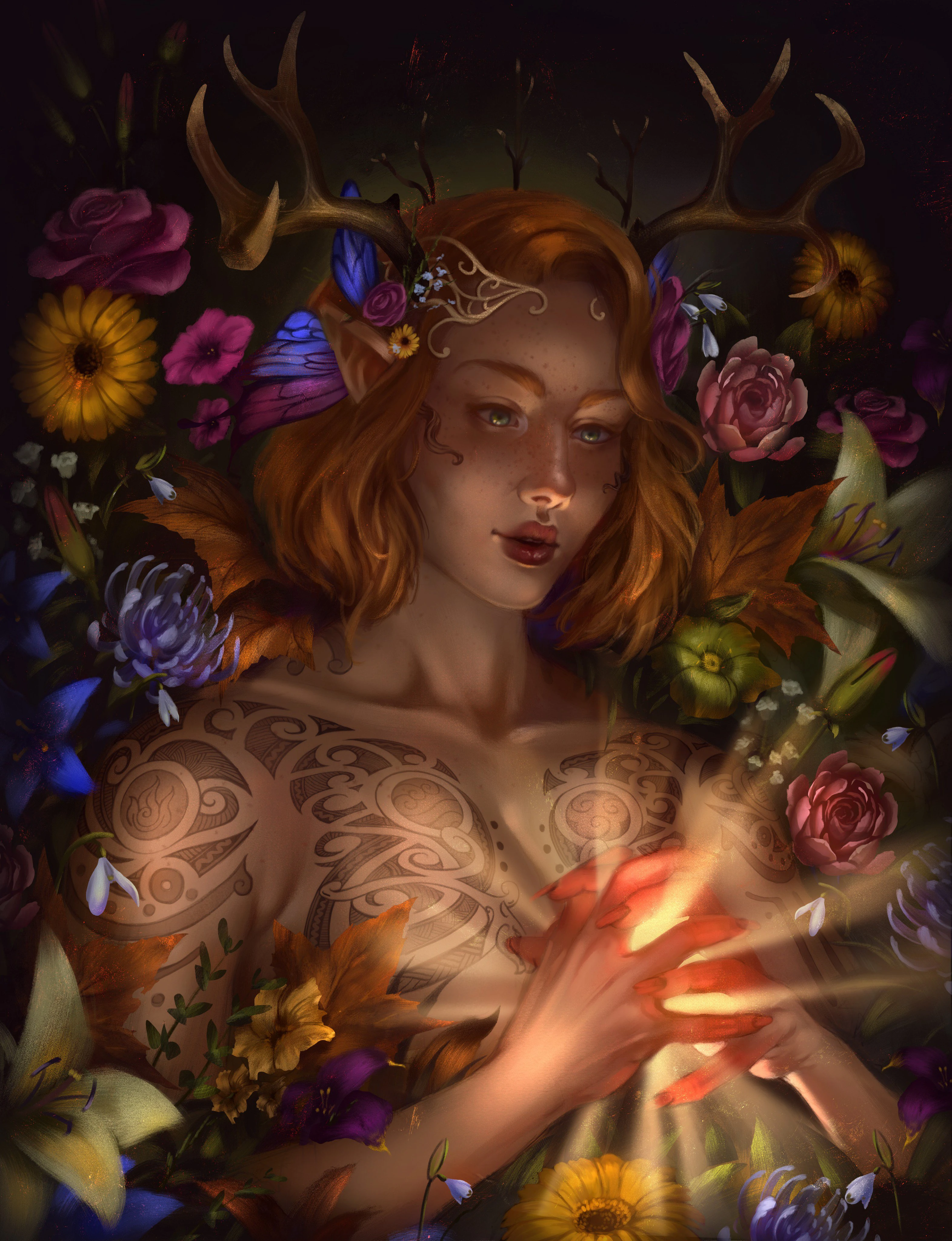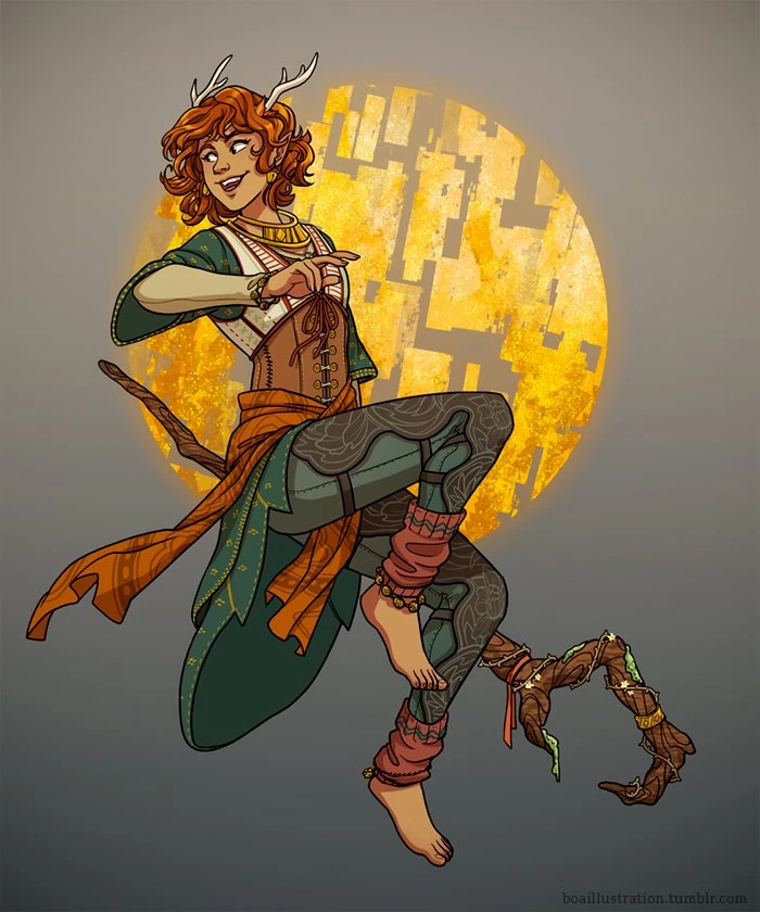 Every druid leader-to-be must embark on a journey to seek out the sister tribes in order to introduce and establish respect amongst the fellow headmasters. They call this the Aramenté, or Noble Odyssey. When her father felt she was ready, he set her on the path to truly discovering herself. Not knowing when, or if, she will ever return. As she hikes down the mountain towards Stilben, she meditated on the task ahead. Part of the Aramenté is proving yourself a strong warrior, a valiant protector, and a wise and compassionate leader. With this knowledge, one thought plays in repeat in her mind: is she even worthy?"[33]