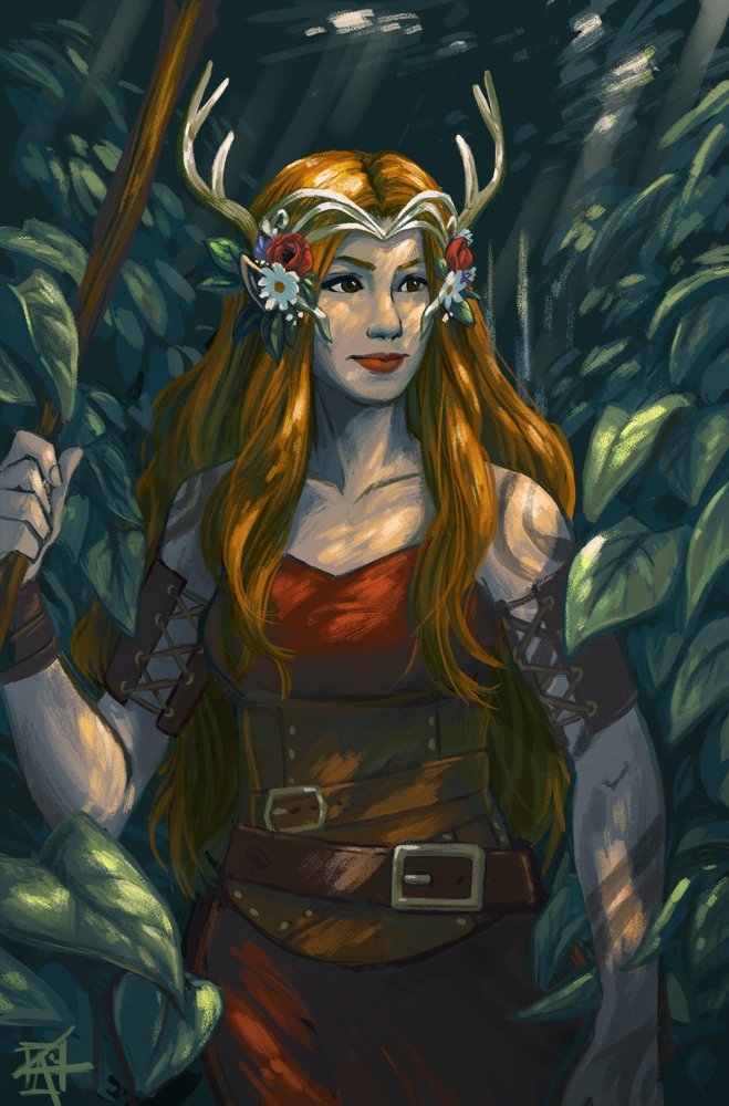 "A first impression of Keyleth would leave you with little information on the half-elven druid. You might even think that her social awkwardness, due to her sheltered upbringing, is... kind of sweet. Of course, it would be unwise to underestimate her based on first impressions. Under that unintimidating petite frame is a vicious beast waiting to be unleashed, whose natural powers have made even the fiercest of champions pee their pants. Literally.