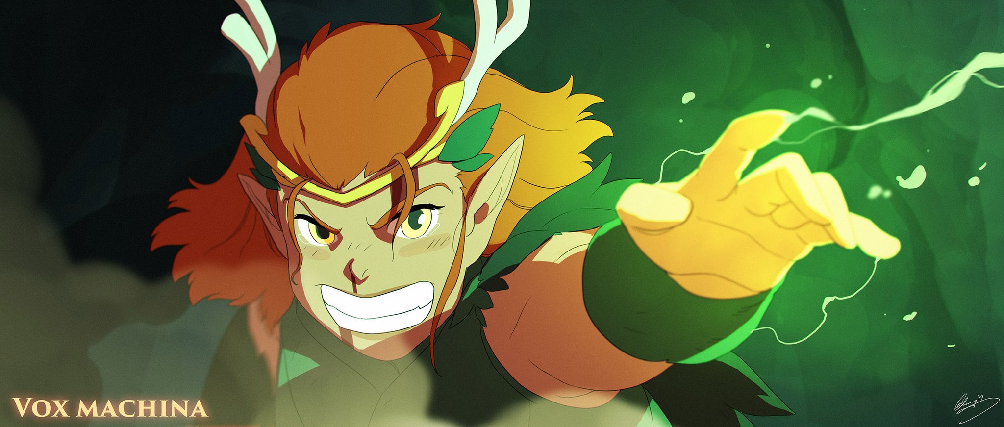 During her adventures with Vox Machina, she became the wielder of a legendary staff, the Spire of Conflux, to fight against the Chroma Conclave. She completed her Aramenté and became the headmaster of the Air Ashari, a position that grants her the title Voice of the Tempest, adding several thousand years to her lifespan.
