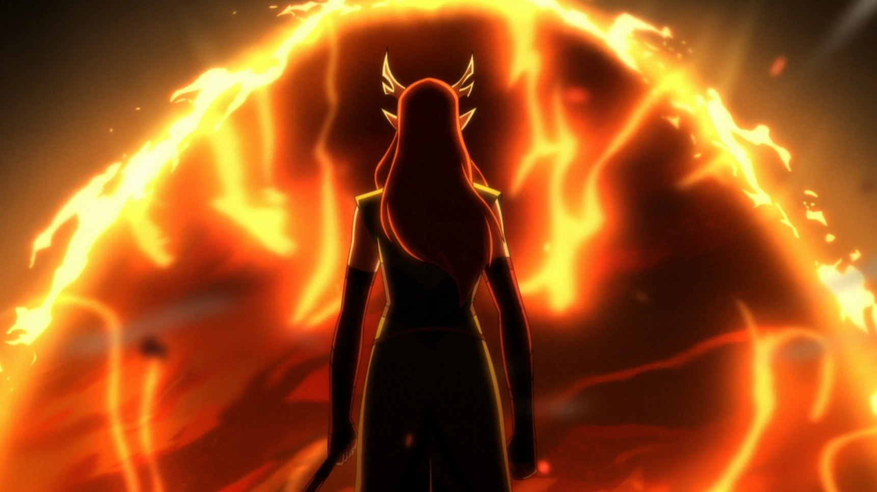 Screenshot of Keyleth at the rift to the Fire Plane, by Titmouse from "Pass Through Fire" (LVM2x05).[art 3]