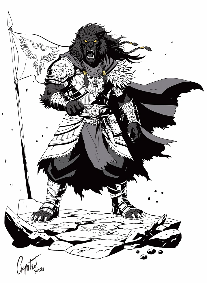 Talcydimir is a nama with jet black fur, a black mane and amber eyes.[3]