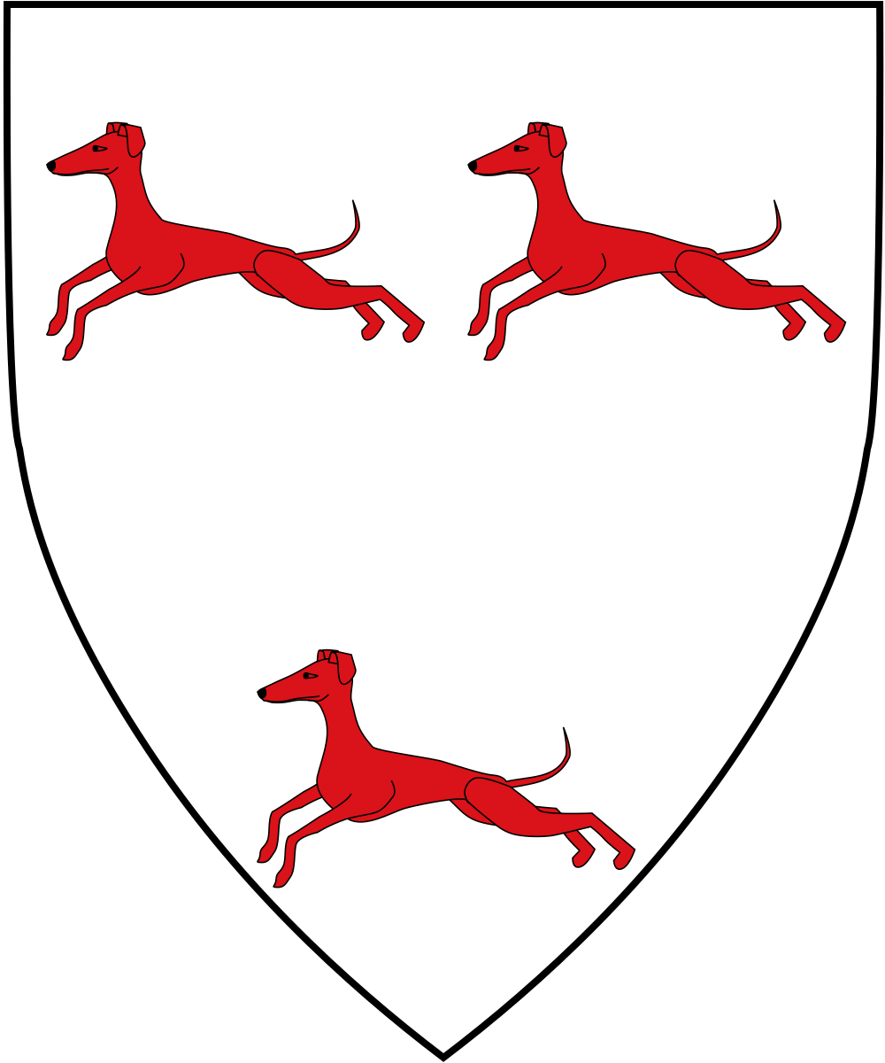 The king's banner shows three red hounds on a white field;[3] they honor the current king's father and two brothers.[4]