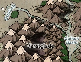 - ↑ Official map of the Verstglade and nearby features from the Explorer's Guide to Wildemount, p. 7. This page contains unofficial Fan Content permitted under the Wizards of the Coast Fan Content Policy. Not approved/endorsed by Wizards. Portions of the materials used are property of Wizards of the Coast. ©Wizards of the Coast LLC.