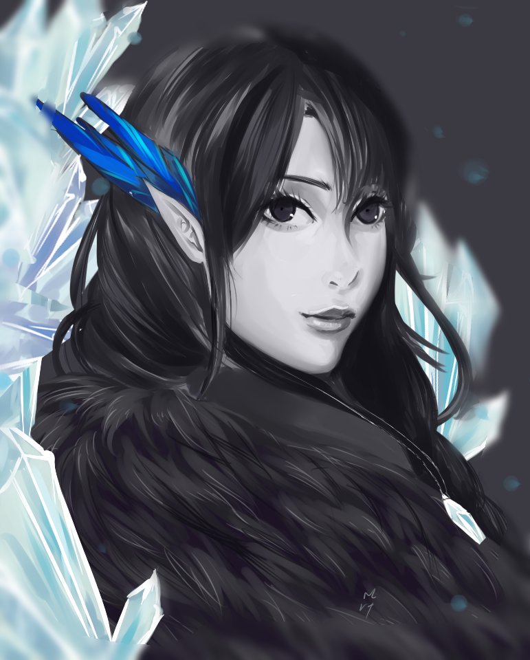 ↑First official portrait of Vex'ahlia, by Kit Buss (source). This file is a copyrighted work. Its use in this article is asserted to qualify as fair use of the material under United States copyright law.