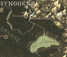 - ↑ Official map of the Vues'dal Waters, showing proximity to Syngorn, by Andy Law from Critical Role: Tal'Dorei Campaign Setting. This file is a copyrighted work. Its use in this article is asserted to qualify as fair use of the material under United States copyright law.