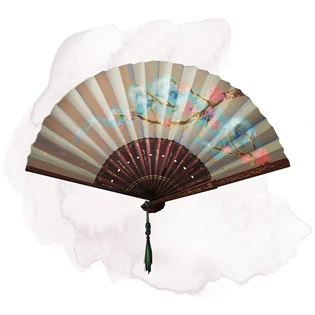 The fan owned by the Mighty Nein was about a foot-and-a-half long and looked like a larger hand fan. It had a beautiful design on the front of a continuously curled series of lines like snakes or serpents winding around each other without a head, long tangling coiled gray lines that faded at the tips, weirdly beautiful and very watercolor-esque.[3]